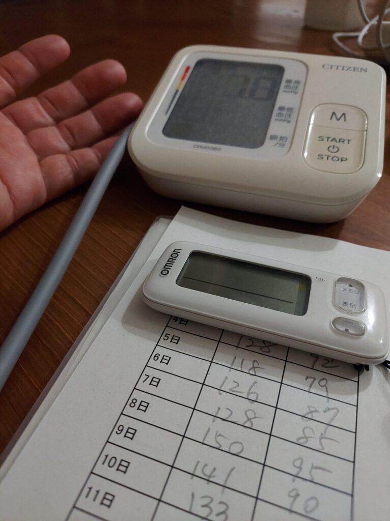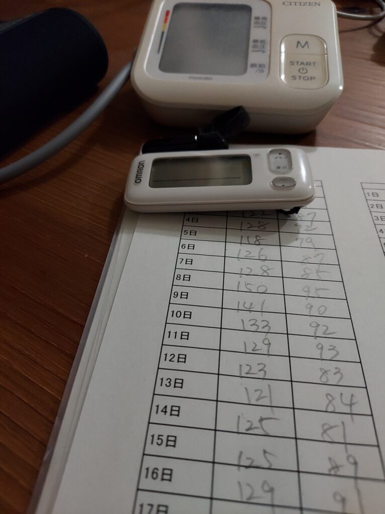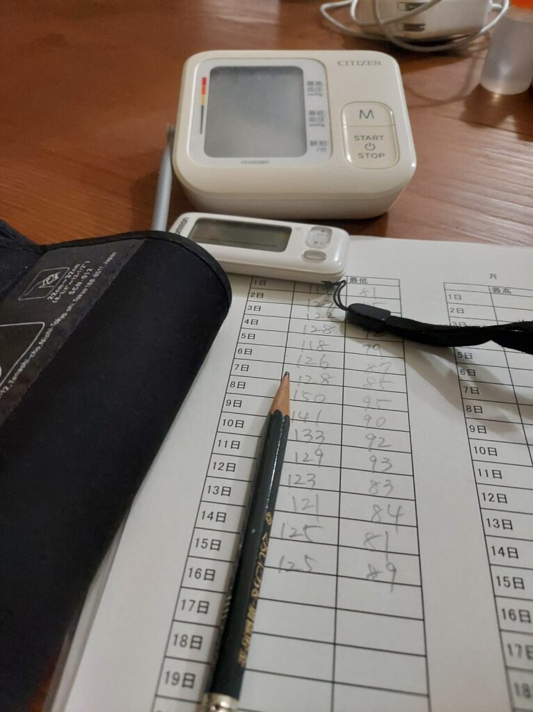 血圧計測、万歩計更新。白湯飲みながら目標確認。