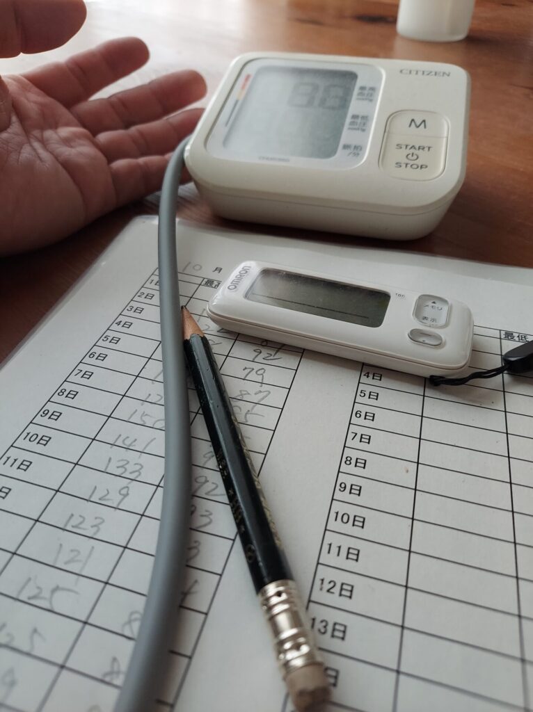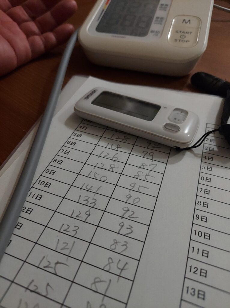 血圧計測、万歩計更新。白湯飲みながら目標確認。