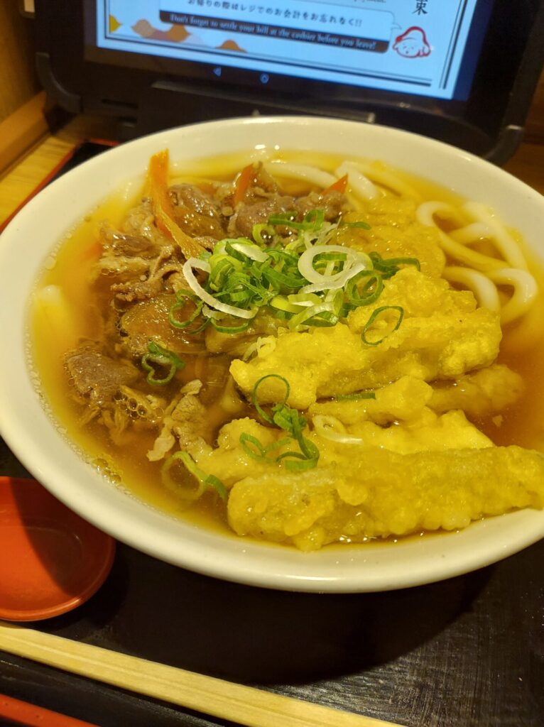 大福うどん:柔らかい博多うどんにシャキシャキのゴボウ天が合います。