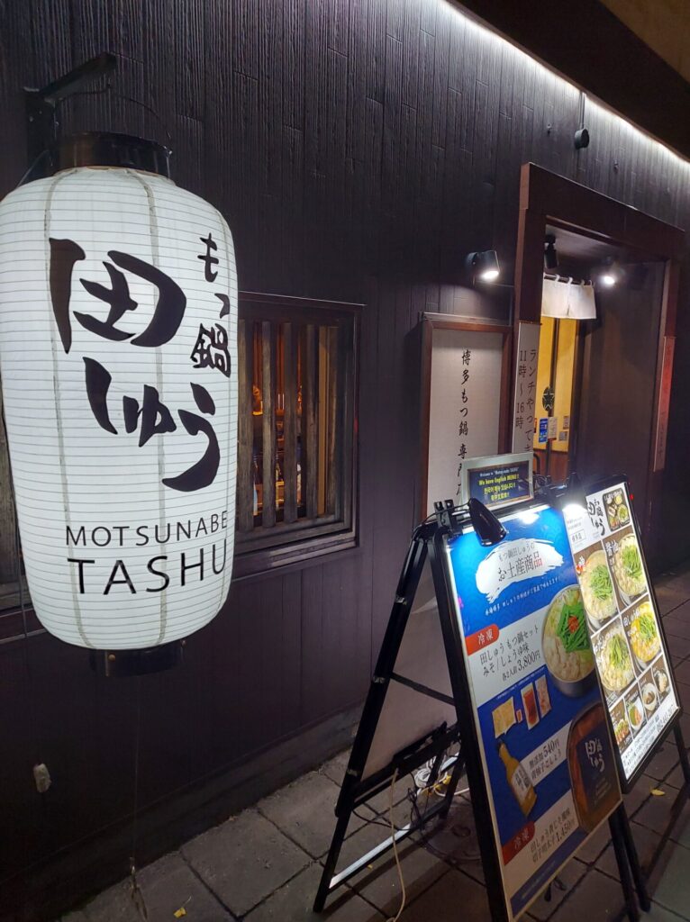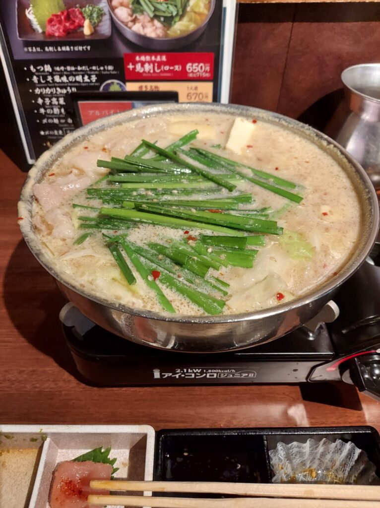 博多の夜の〆はもちろんもつ鍋。ビールも進む。